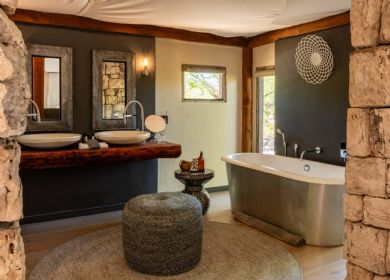 An atmosphere of elegant dining prevails, complimented by the daily activities taking place around the watering hole, approximately 60 meters away. The surrounding nature lends itself to long lazy afternoons, spent relaxing on the sofas in the lounge, watching the animals go. And when things heat up, all that is required is a gentle stroll to the rim flow pool. Sit and relax in the flowing waters while enjoying an ice cold cooler. Alternatively if more strenuous activity is required, then relaxing on your patio and reading a good book should provide you with all the exercise you may need.