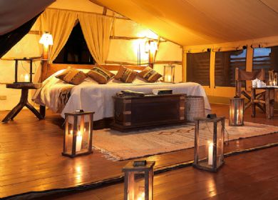 Six luxury tented cottages and two luxury tented suites provide supreme comfort year-round for up to sixteen guests. Full board is included; chefs will delight you with both Italian and African cuisine.