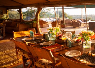 The inviting main areas of Loisaba Tented Camp include a large open dining area, separate open lounge and bar, a large wooden decking area for outside dining, relaxing and enjoying the view, and one of Africas most picturesque infinity pools.