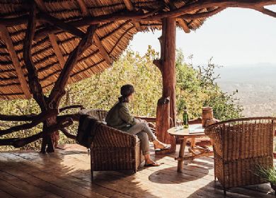 Poised on a rocky kopje, the Loisaba Star Beds command sweeping views over an undulating valley and a permanent waterhole, frequented by resident wildlife.