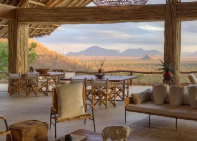 The surrounding Samburu National Reserve is an area of spectacular scenery; its dry plains bisected by the meandering river, with the backdrop of Africas dramatic mountains, including Mt Kenya. The 14 spacious tents have rustic and colourful African touches, offering all the comforts; including a private plunge pool on the deck, hot and cold running water, electricity (and complimentary herbal shower and bath products.)​
