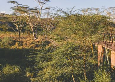 The lodge offers guests an authentic safari experience, providing comfortable accommodation in a tranquil setting near the banks of the Ewaso Nyiro river. This unique safari lodge stands out for its pioneering spirit and innovative design. The 85 woody rooms all have terraces and all rooms and the restaurant and bar overlook the river.