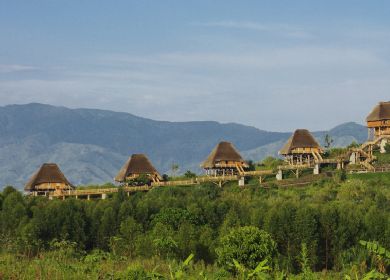 This exclusive, colorful and vibrant lodge enjoys spectacular views across Lake Mutanda with the Virunga Volcanoes as a magnificent backdrop.