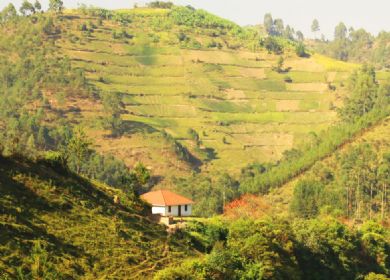 Situated just outside Kisoro, the area is of astonishing beauty and the views of the Virunga volcanoes dominating the landscape will remain engraved in your memory.