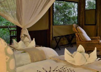 The four-poster beds are fully mobile and can easily be wheeled out onto the private wooden deck overlooking the shimmering waters of the Boro River. For the ultimate indulgence, guests can enjoy a Star Bath on the deck. Each room is equipped with a hairdryer, ceiling fan, in-room safe, minibar, and mosquito nets. Ensuite facilities include an indoor shower and double vanity. Complimentary wireless internet access is available in all of the rooms of the camp.