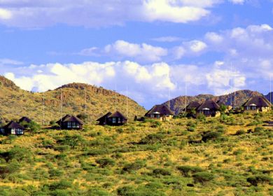 Epacha Game Lodge is located on top of the hills of the 13,000 ha Epacha Game Reserve near Etosha National Park. There are 18 luxury chalets spread over the hills overlooking the private game reserve. The Lodge also boasts a luxury villa.