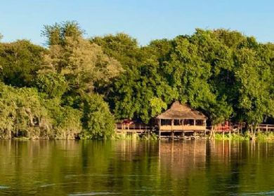 Entering Hakusembe River Lodge at the end of the winding gravel track, you are greeted with a refreshing image of green lawn, large trees, a collection of thatched chalets and a strip of sparkling river. Instantaneously the fresh balm of beauty soothes your weary soul. You have reached the verdant Hakusembe River Oasis. A feeling of calm descends. And it remains present for the time of your visit.