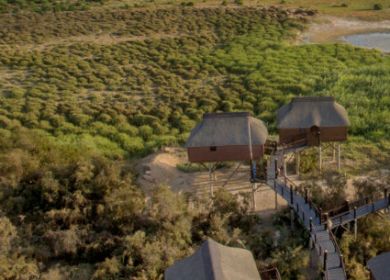 This intimate camp has only three spacious suites each with its own plunge pool, en-suite bathroom, “sala”, and outdoor shower. The lounge and dining areas have wonderful views of a productive waterhole below the camp, the open deck allowing for relaxed, stylish dining under the African sky. Guests at Little Ongava share a dedicated guide and vehicle, ensuring the best possible nature experience at one of Africa’s great wildlife destinations. Day and night wildlife-viewing drives, visiting hides overlooking waterholes, walks and rhino approach with experienced guides can all be enjoyed exclusively on this reserve. Game drives and day trips into nearby Etosha National Park are also offered.