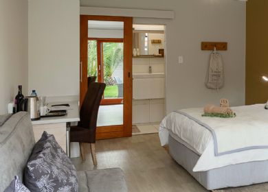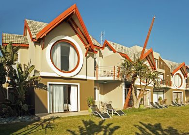 The 24 uniquely designed self-catering accommodation units have spacious bedrooms, en-suite bathrooms, patio and private parking. Each twin-bedded room features a fold-out sleeper couch to accommodate 2 small children (under 12) free of charge when sharing with 2 full paying adults. The patio is equipped with a barbeque facility, a fitted kitchenette with under counter fridge, 2 plate hob and a wooden bench for seating. Utility boxes with most utensils needed are available at reception and fresh food supplies can be ordered daily.