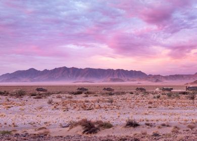 Dead Valley lodge is situated inside the Namib – Naukluft Park, in-between Seriem and Elim Dune on the D826 road leading to the world-famous Dead Valley at Sossusvlei. The lodge offers twenty free standing climate-controlled luxury tented chalets each with a panoramic view of the Namib Desert with towering red sand dunes, rugged mountain ranges, and arid desert savannahs. The restaurant serves delicious Namibian – style cuisine whilst guest can relax in the picturesque bar with a swimming pool overlooking the Elim Dune. Games drives are offered in the mornings and afternoons to Sossusvlei and Sesriem Canyons.