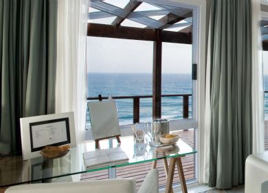Here innovative architecture merges with stunning scenery to offer a unique holiday experience. The luxury villas, which are built on multiple levels, offer all conveniences including a fully equipped kitchen, lounge and dining area, outside patio for al fresco meals, upper level sundowner terrace and breathtaking sea views. With three double en-suite bedrooms, air-conditioning throughout, a designer swimming pool and private beach access, holidays at Deacra are an unforgettable experience.
