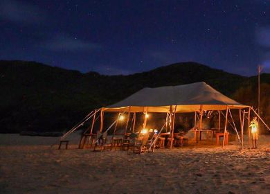 Anvil Bay is a private and exclusive barefoot beach camp on a rare untouched stretch of coastal wilderness in Mozambique’s most southern national park. Created with the smallest possible footprint to preserve the wilderness and special sense of place the camp is set up on the beach under canvas and thatch. Just 10 Casinhas are nestled in the dune forest on stilted wooden decks each with its own stretch of beachfront. The lure of Africa is to experience the wilderness as it’s been for thousands of years. Anvil Bay is a beach in Africa where it is as it’s been for thousands of years. On a rare unspoiled stretch of beach guests get to experience life close to nature but with all the comforts of home. The perfect beach holiday to just relax and recover from a strenuous overland safari. Or go on new adventures at sea on the beach or exploring the lakes forests and savannas of the park. Escape to a world of simple pleasures and lifetime memories. Sunrises over the ocean and sunsets across the Parks pristine lakes and vast savannas. Evenings under the stars around a campfire. Miles of untouched beaches and an ocean teeming with marine life to explore. Anvil Bay is a dream destination for nature lovers in search of the perfect get away from it all wilderness beach experience.